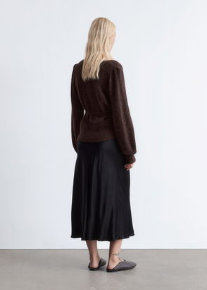 Short long-sleeve cardigan knitted from a mohair and merino wool blend. Traced with five button closures Relaxed fit Round neckline Raglan sleeves.