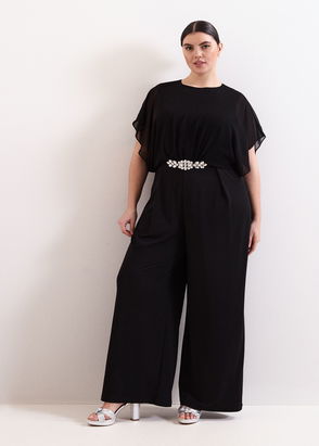 Viscose jumpsuit with a draped neckline, thin straps and criss-cross open back.