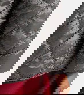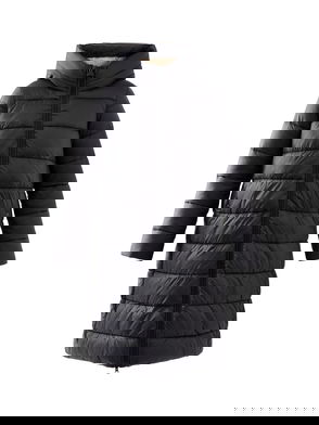 Oversized, long padded puffer jacket with a high collar and a straight, boxy silhouette.
