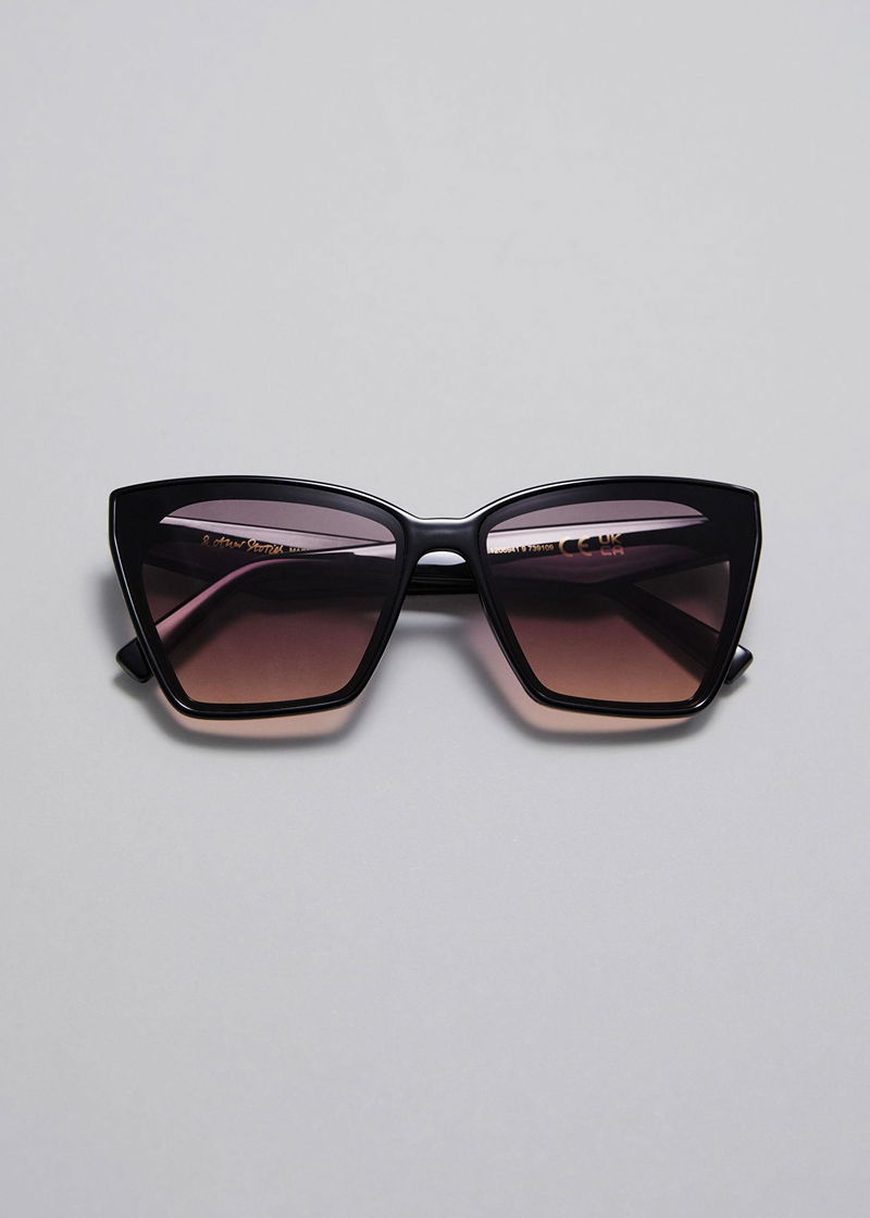 This pair of timeless sunglasses features exaggerated cat-eye frames. They're fitted with gradient lenses.