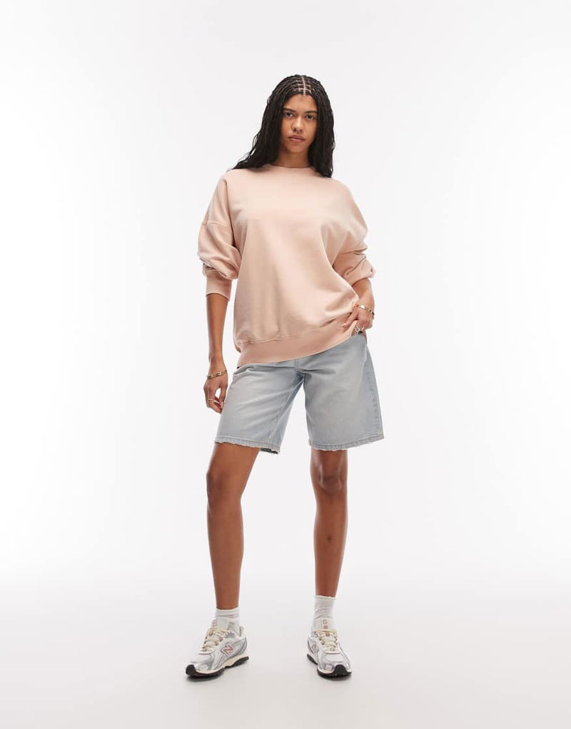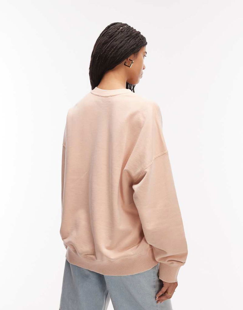 Oversized Crew Neck Sweatshirt In Clay Pink
