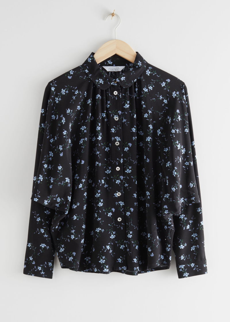Oversized bat wing sleeve floral print shirt detailed with front pockets and frontal buttons.