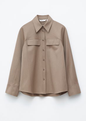 Oversized shirt designed with a patch pocket at the chest. Turn-down collar Eight button closures. Buttoned cuffs.