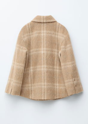 Oversized wool blend zip jacket with duo pockets and button closures.