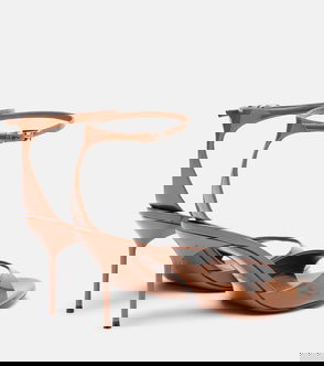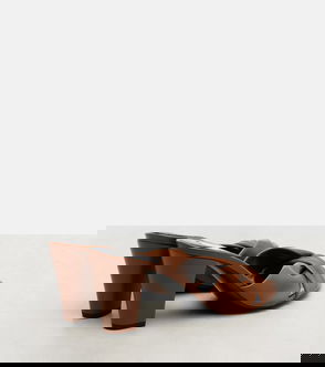 Heeled leather mule sandals with chunky padded straps, a defined square-toe and narrow '90s heel.