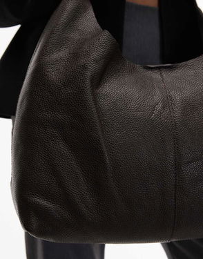 Timeless shoulder bag crafted from glossy leather, detailed with an adjustable buckled strap. Inside the cotton-lined interior you'll find a large zipped pocket.