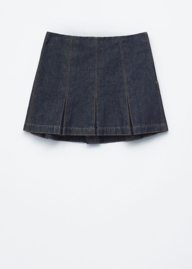 Pleated Denim Mini Skirt