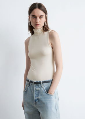 Long-sleeve turtleneck top knitted in a pointelle finish.
