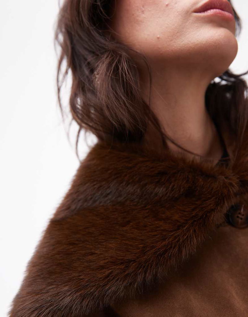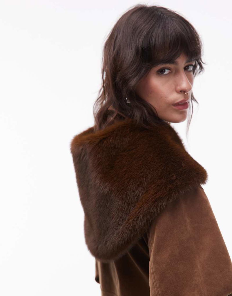 Premium Faux Fur Collar Scarf In Brown