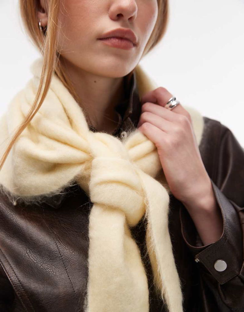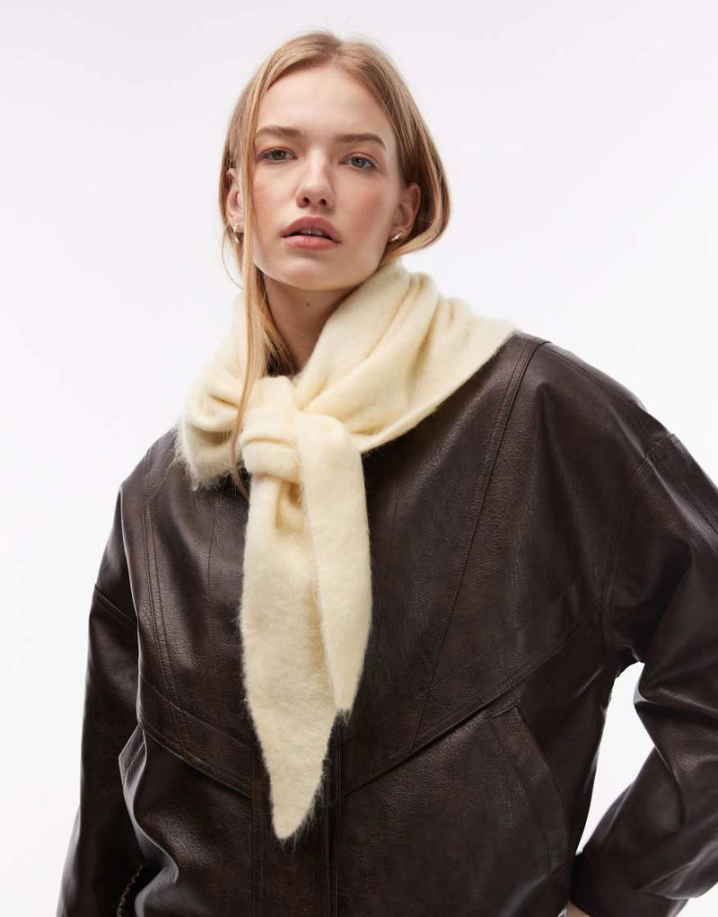 Premium wool & mohair blend fluffy knit triangle scarf.