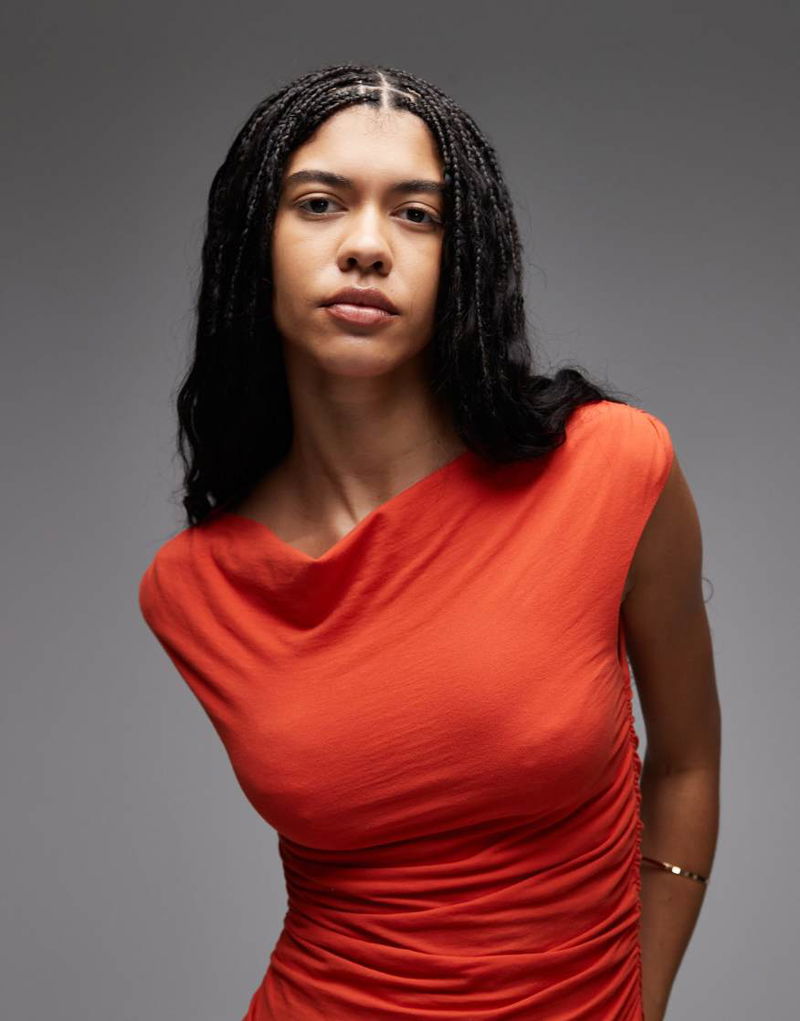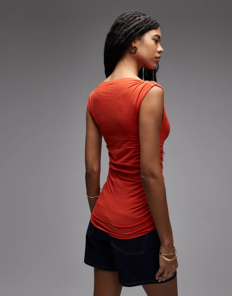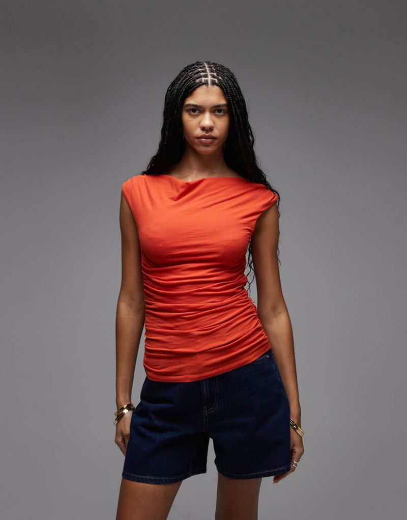 Pure Cotton Sleeveless Drapey Top In Red