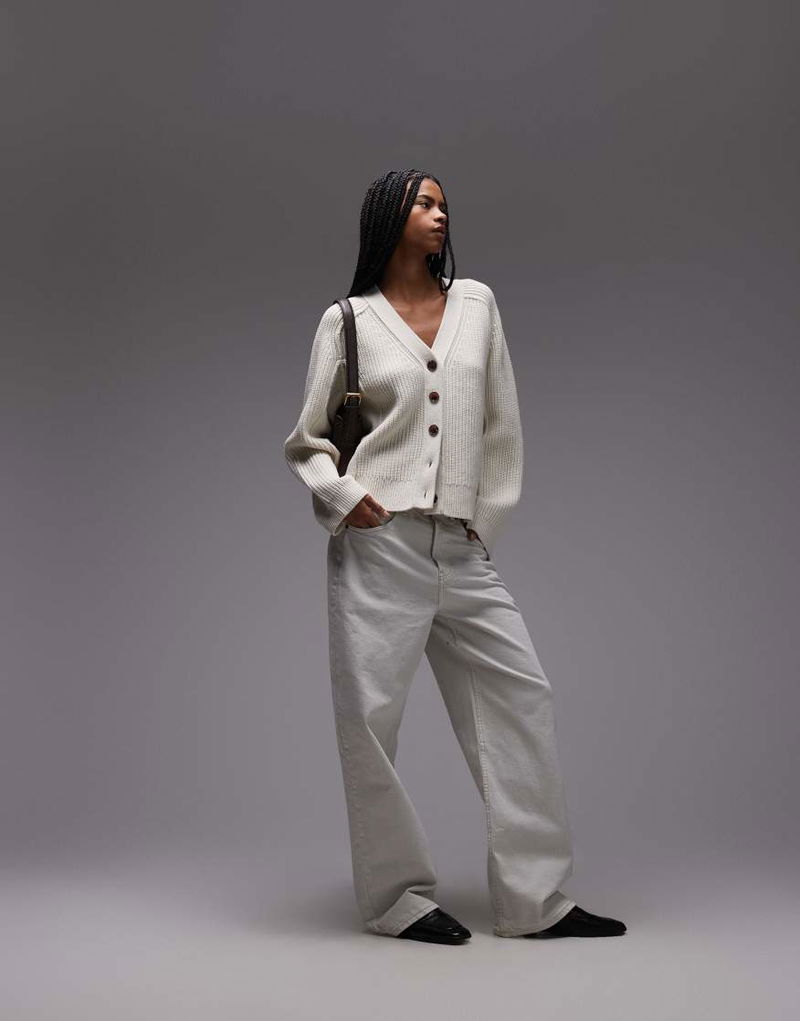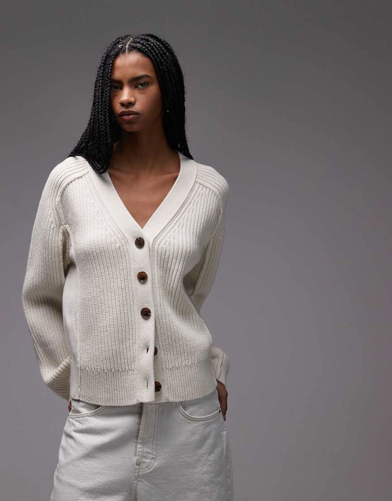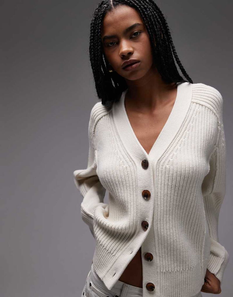 Pure Wool Ribbed Cardigan In Off White