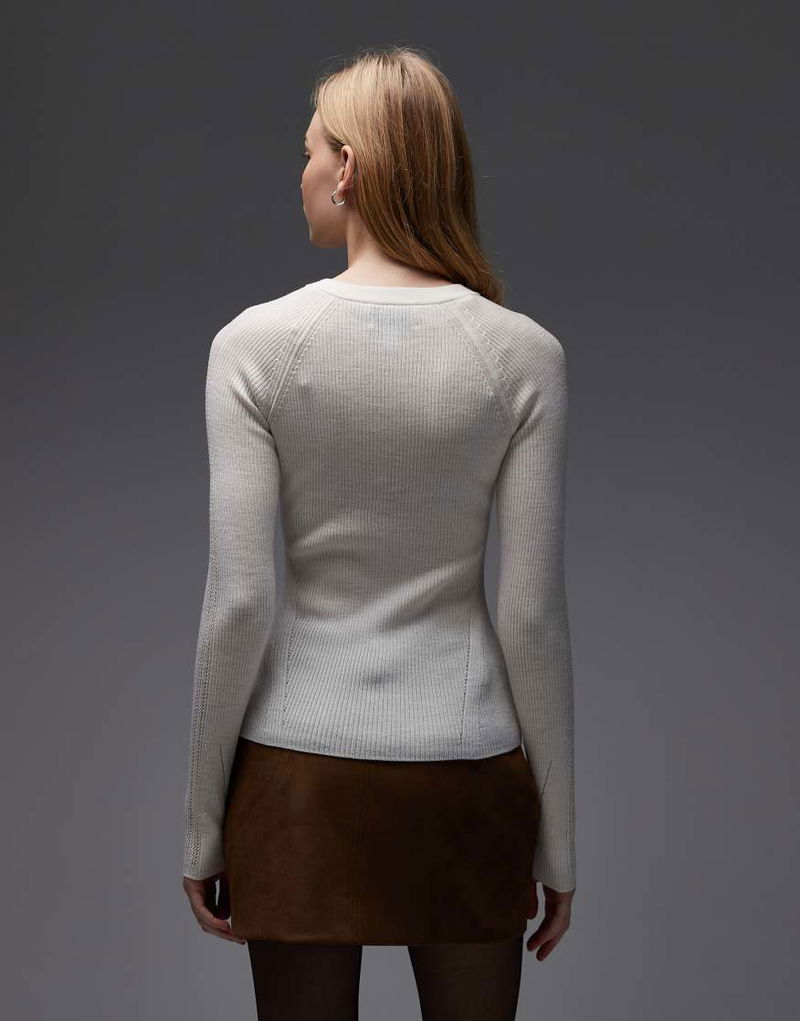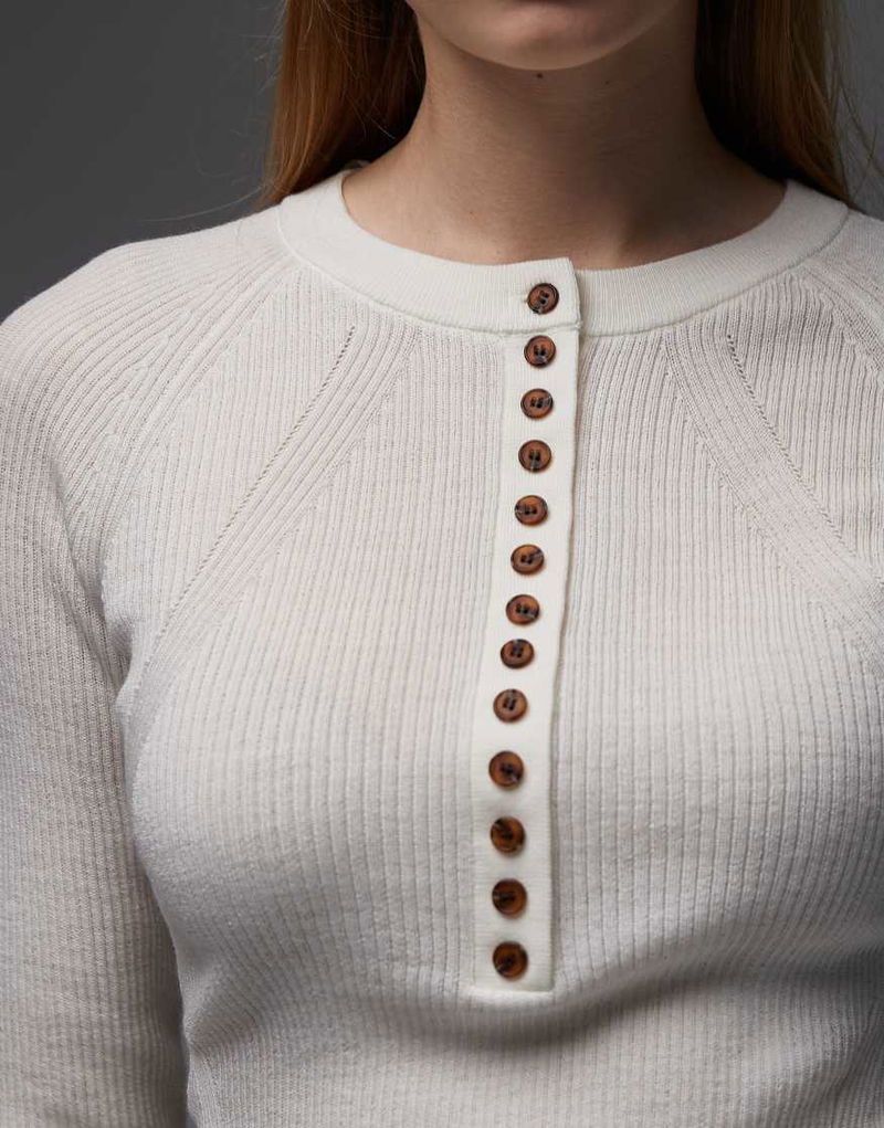 Pure Wool Ribbed Knitted Henley Top.
