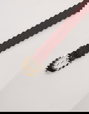 Real Leather Croc Mid Waist Belt With Gold Buckle In Brown