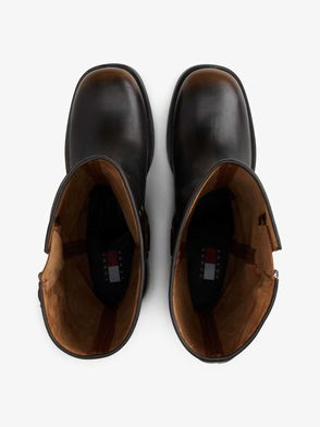 Real Leather Knee High Heeled Boots With Suede Lining In Dark Brown