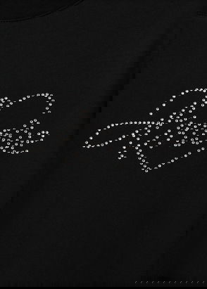 Relaxed rhinestone embellished t-shirt made from organic cotton jersey featuring a rhinestone embellished neck and a round ribbed neckline. Finished with double needle stitching.