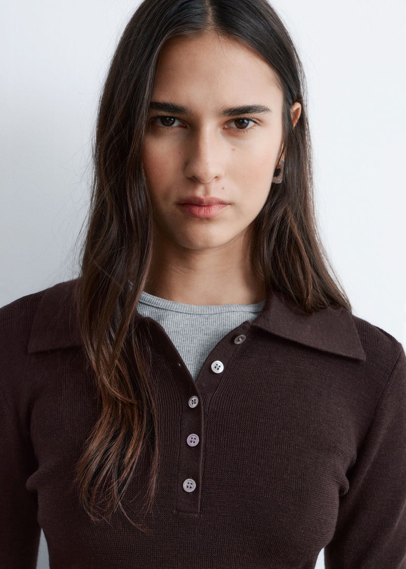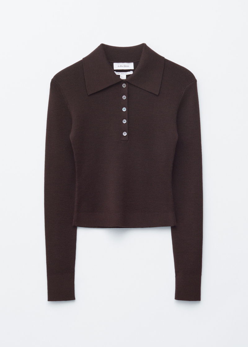 Rib-Knit Merino Wool Polo Top