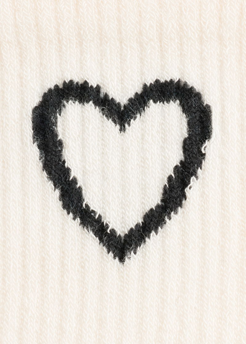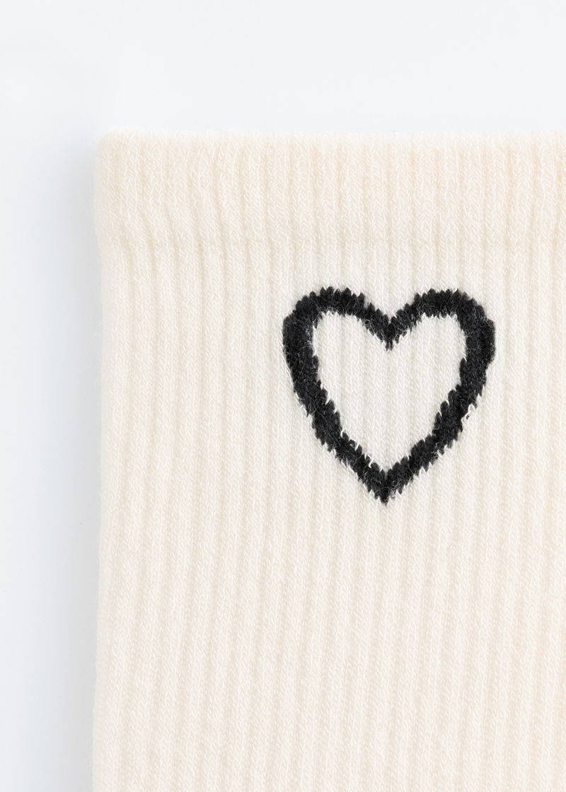 Soft and comfortable socks featuring a rib-knitted ankle with a decorative heart motif.