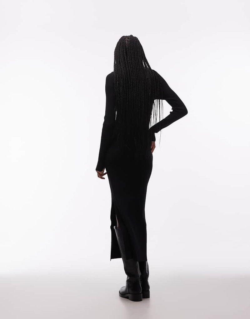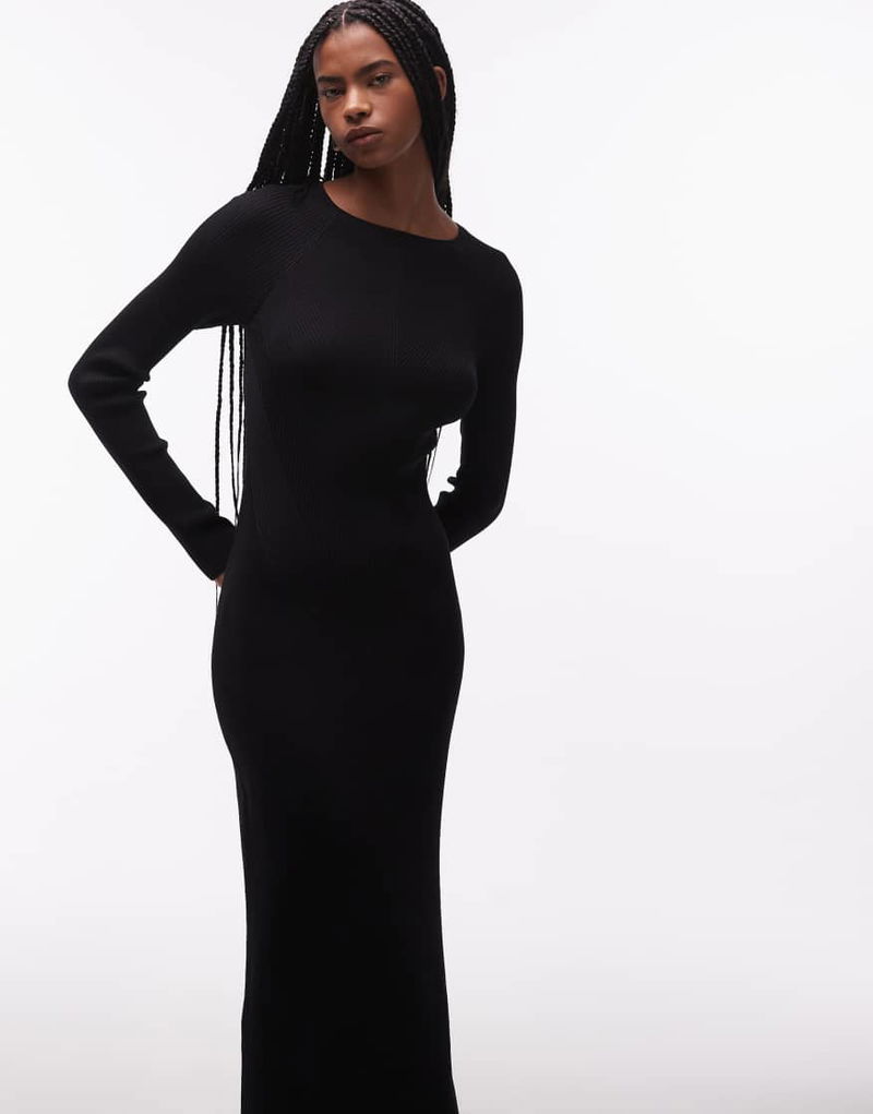 Ribbed Structured Knit Maxi Dress With Cuff Detail.