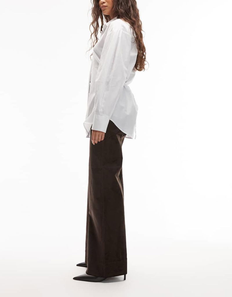 Rich Cotton Flared Velvet Trousers In Dark Brown