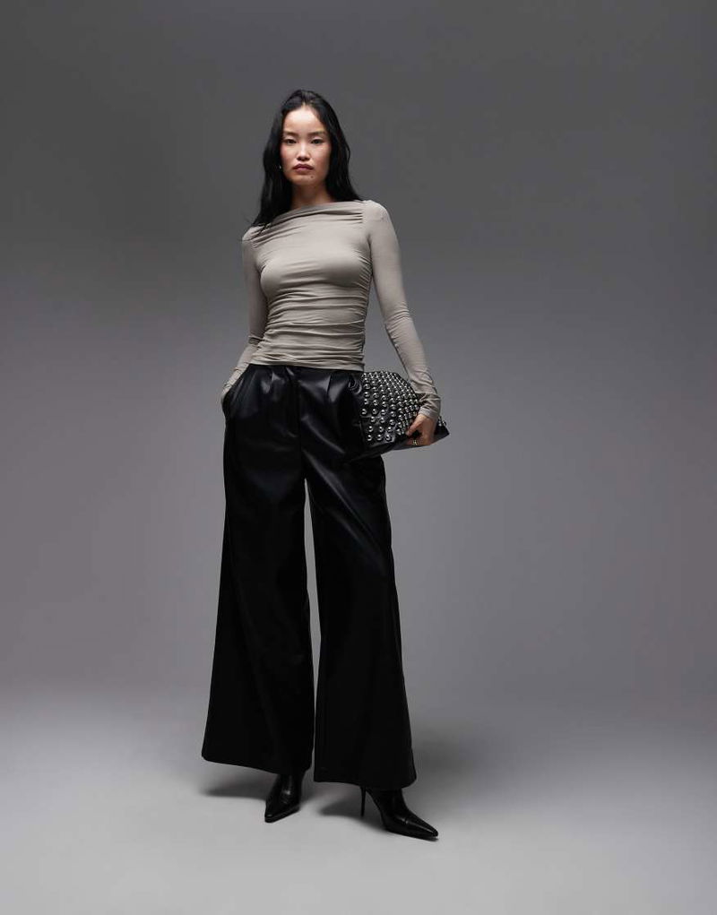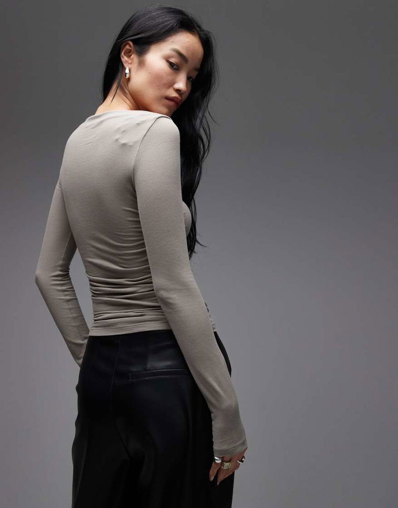 Rich Cotton Long Sleeve Drapey Jersey Top In Beige