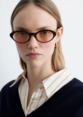 Modern and sleek, these sunglasses have round plastic frames with a semi-transparent quality.