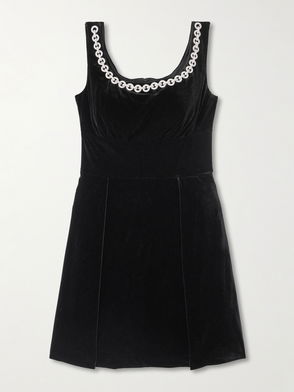 Fitted velvet mini dress featuring ruched detailing along the sleeves and body. V-cut neckline 3/4-length sleeves. Zipper closure at the back.