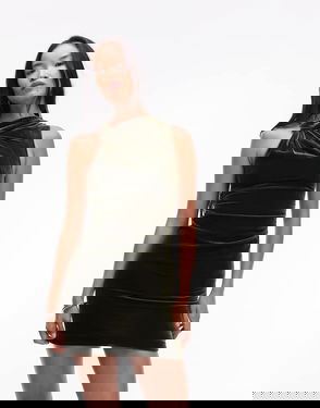 Mini dress cut in a flowy, tunic-inspired silhouette with soft draping and voluminous frills at the sleeves and hem.