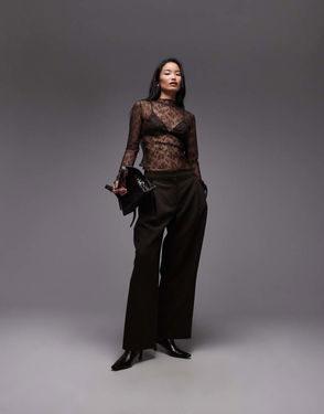 Scooped neck lace detail top crafted from a blend of organic cotton and elastane. Featuring a deep scooped-cut neckline with lace trim and long sleeves in a fitted silhouette.