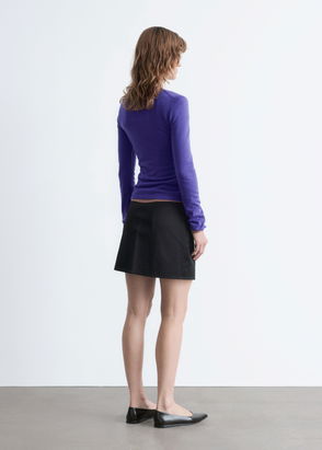 Long sleeve polo top with a sheer, ribbed finish and shell button closures.