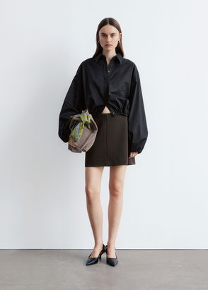 Long-sleeve shirt made from a silk blend. Detailed with vertical exposed seams. Traced with concealed button closures. Relaxed fit. Turn-down collar. Buttoned cuffs