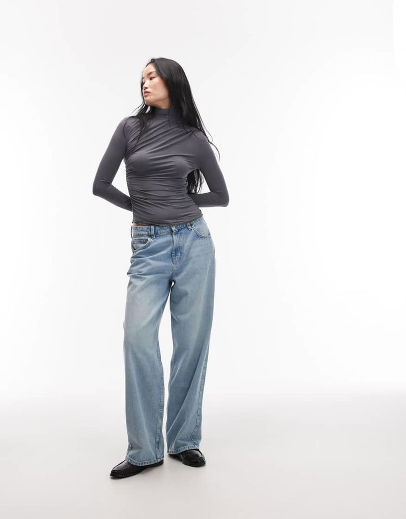 Slim Fit Long Sleeve Turtle Neck Asymmetric Top In Dark Grey
