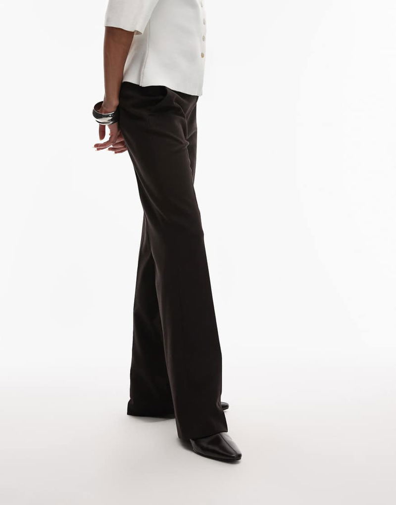 Slim Flare Tailored Trousers In Dark Brown