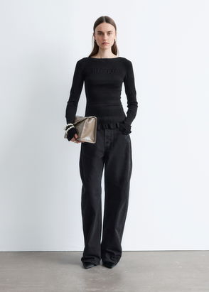 Long-sleeved top with a smocked texture and a slim, second-skin silhouette.