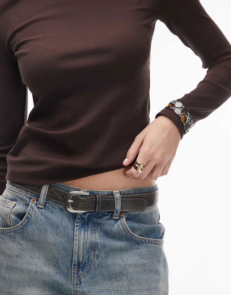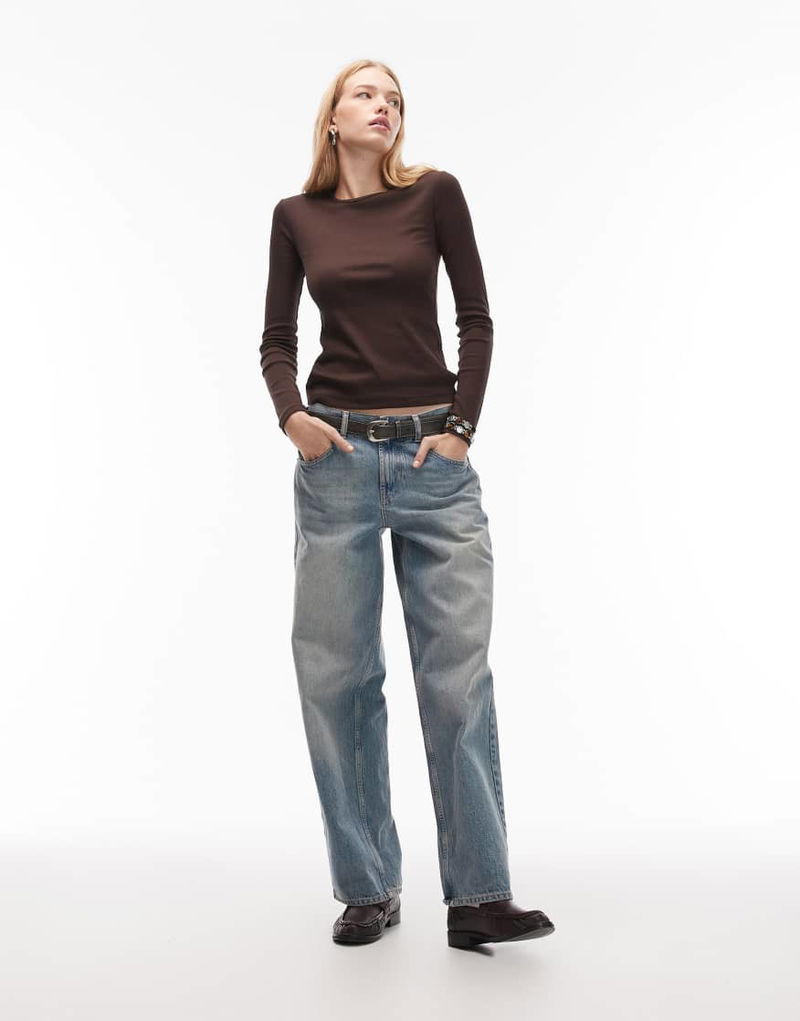 Soft Jersey Rib Long Sleeve Top In Dark Brown