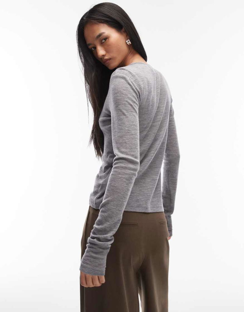 Soft Knitted Henley Top In Grey Melange