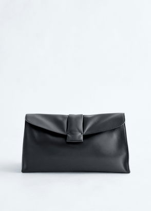Crafted in India from supple leather, this soft clutch features a flap with an additional tab and a concealed magnetic fastening at the top. It includes a detachable, adjustable shoulder strap for crossbody wear, and an open inner pocket for storing smaller essentials.