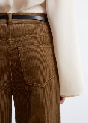 Made from 100% pure cotton, these trousers feature a relaxed fit with full-length, straight legs. Designed with vertical stripes and button details at each side of the waistband, and finished with an invisible side seam zipper with button closure.