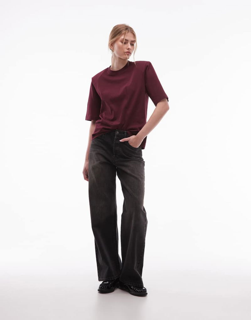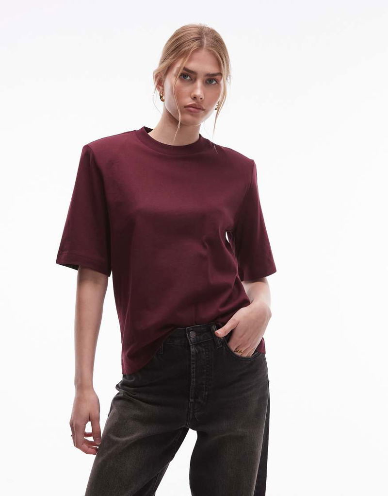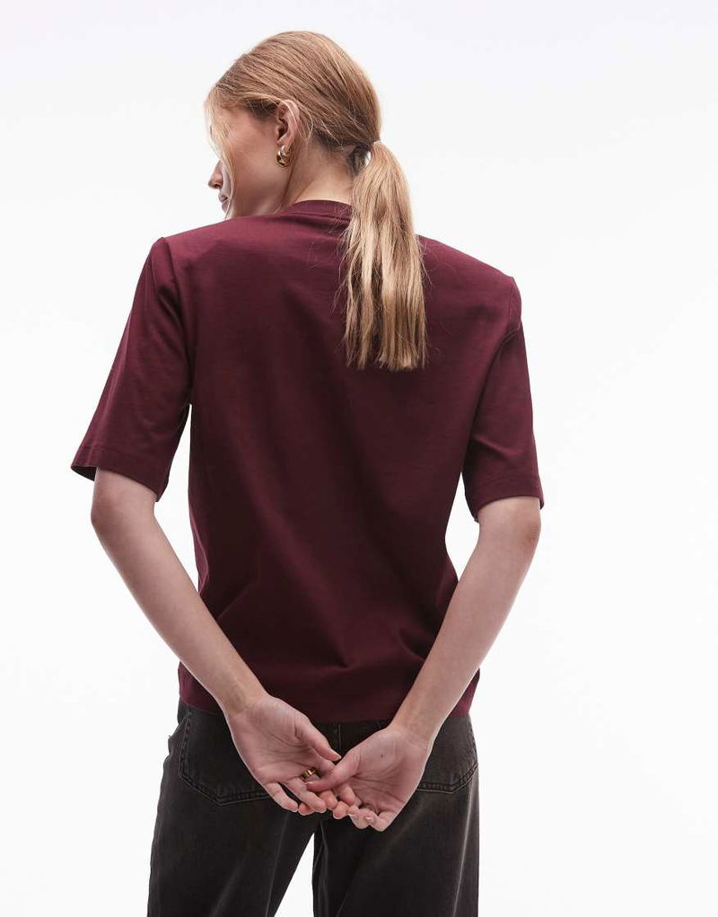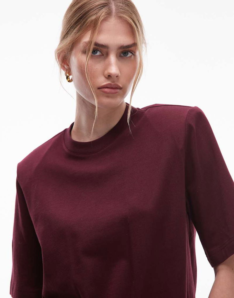 Structured Jersey Top With Shoulder Pads In Dark Wine