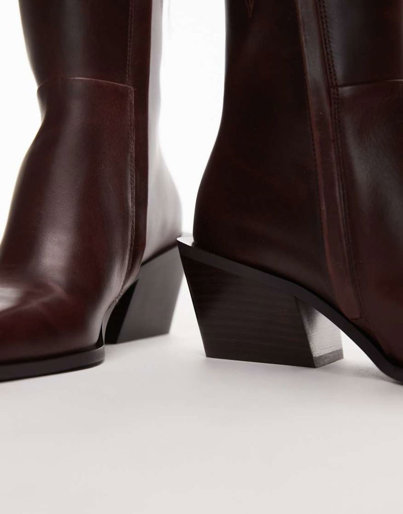 Suede Leather Pointed Toe Heeled Ankle Boots In Dark Pomegranate Red