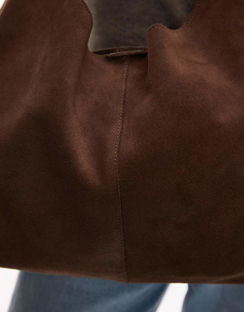 Suede Small Tote Handbag In Brown