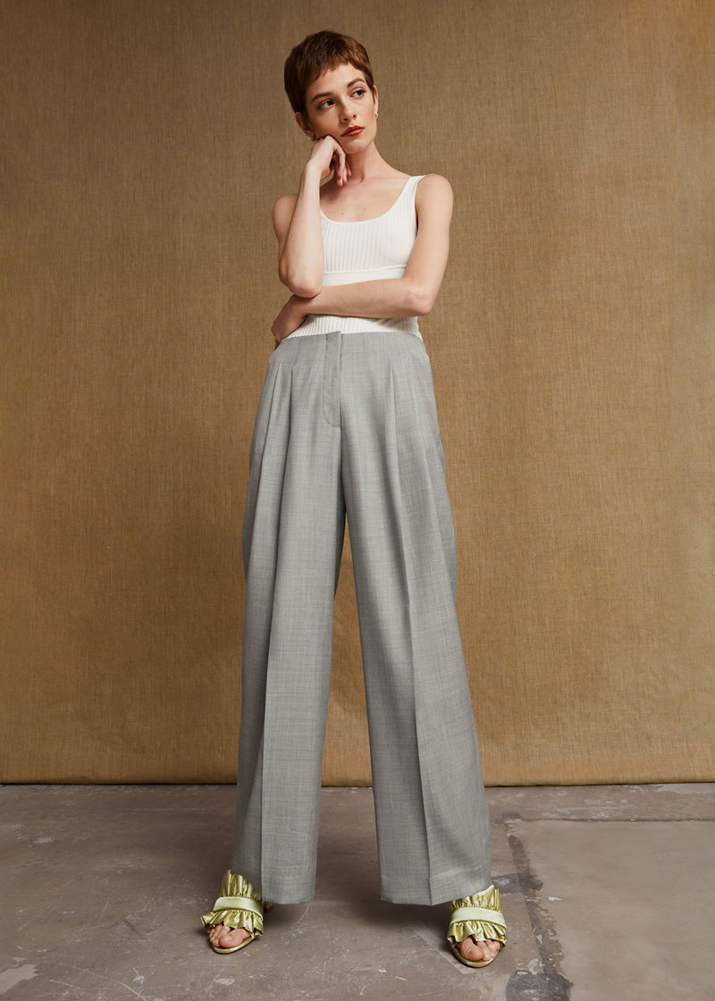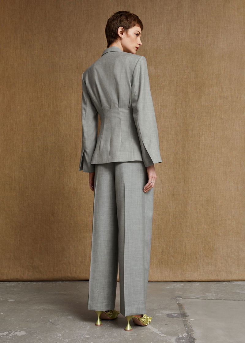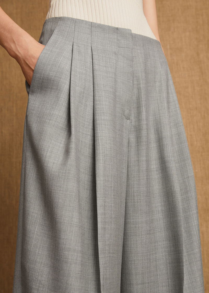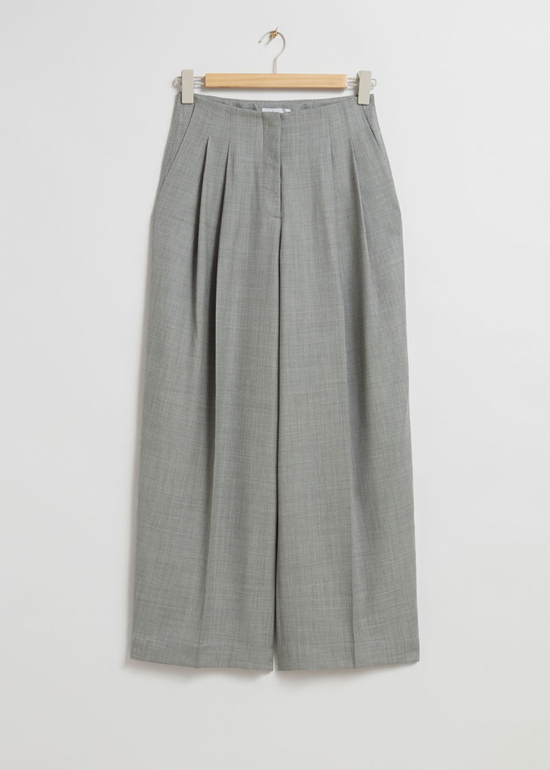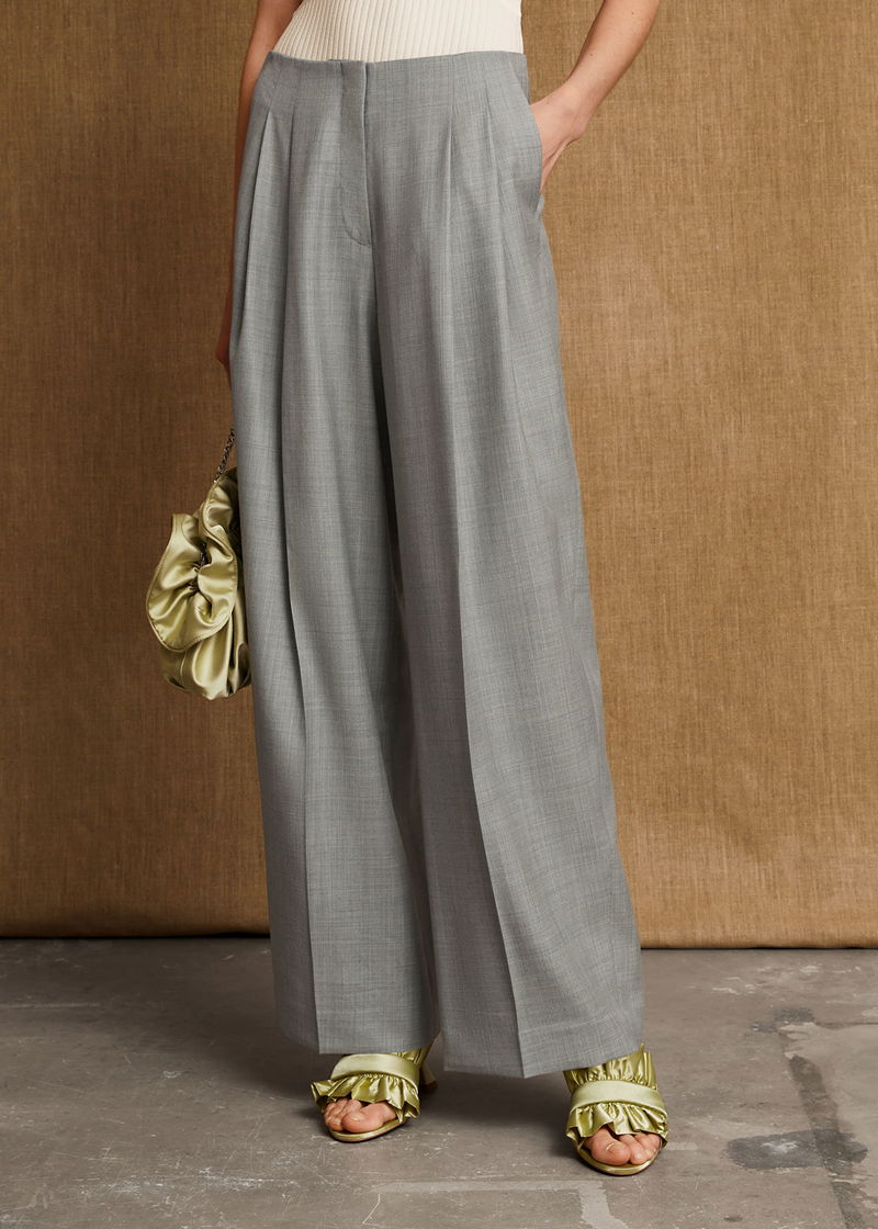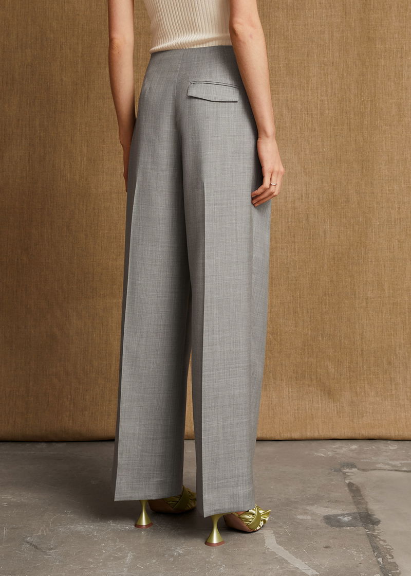 Tailored trousers crafted from RWS-certified wool poplin. Designed with pleated detailing from the waist through the straight leg for an elegant and versatile look.