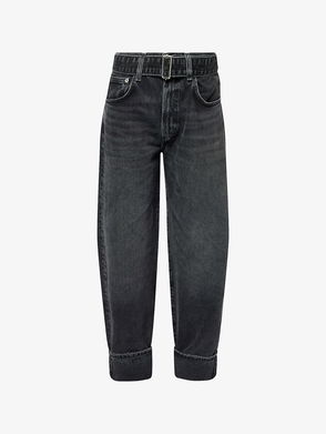 Tapered 4-pocket jeans featuring a high paperbag waist, front pleats and a relaxed silhouette.
