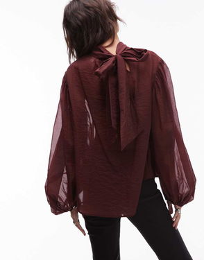 Textured Blouse With Button Front In Burgundy
