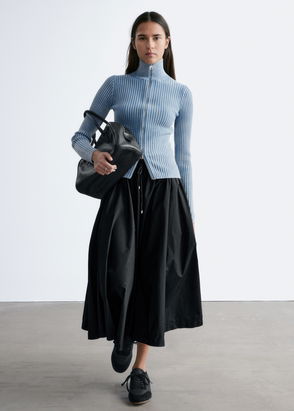 Textured knit midi skirt that gently flares at the hemline. Finished with an elasticated waist and a ribbed hem.