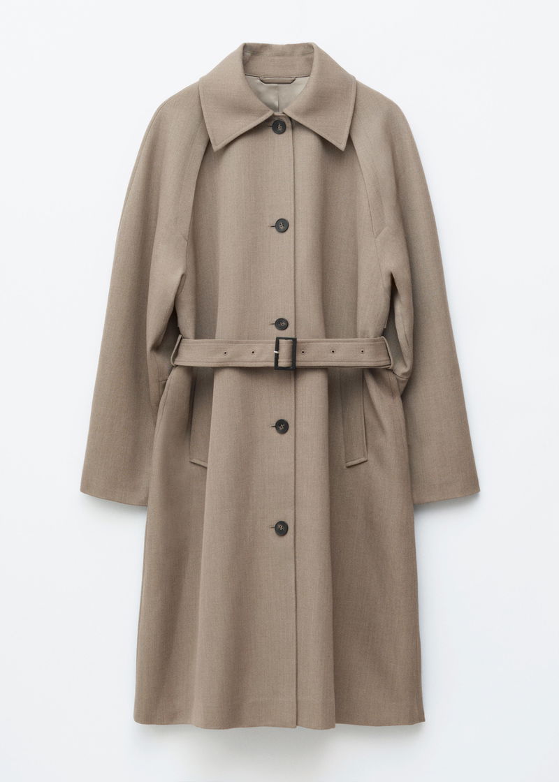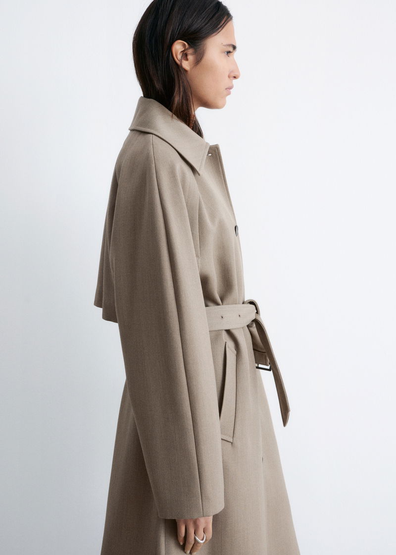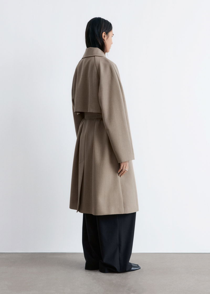 Tie-Belt Wool Trench Coat