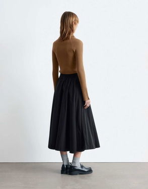 Midi skirt crafted from a lightweight linen blend. Cut in a tiered silhouette with decorative gathers, featuring an elastic waistband for an easy slip-on effect. Finished with side seam pockets and slits at the side hem.