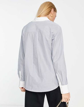 Crafted from rigid cotton denim, this shirt is cut in a relaxed silhouette with a pointed collar, and silver-tone button closures at the front and cuffs. Detailed with all-over topstitched contrast seams. Pair with matching jeans for a full denim co-ord look.