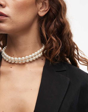 This short necklace is strung with two rows of lustrous faux pearls and secures with a gold-tone lobster fastening. Adjust to desired length thanks to a generous extension chain.
