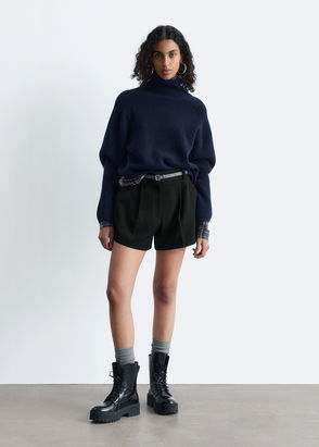 Relaxed long-sleeve knit jumper with raglan sleeves and a ribbed, v-cut neckline.
